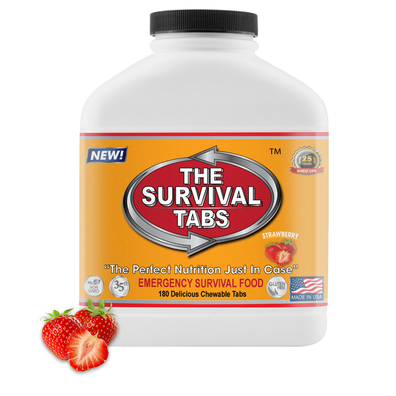 The Survival Tabs are meant to keep you alive and going for months at a time. A person can survive 4-5 months by eating The Survival Tabs exclusively. One daily serving of 12 tablets contains 240 calories, which gives the body the basic daily nourishment required when the recommended calorie intake cannot be met. The Survival Tabs eliminate the need to forage for food in situations where you are lost, stranded, or trapped.saster Preparedness
