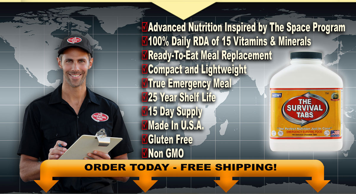 The Survival Tabs were developed more than 30 years ago and were inspired by the early space program. Due to zero gravity in space, American scientists theorized that astronauts might experience difficulty digesting food properly, potentially causing malnourishment. Of great importance was maintaining the astronauts physical functions such as dexterity, stamina, coordination, and mental alertness. Thus began the search for a food product that would provide the daily nutrition needed to carry out missions, while meeting the tight storage requirements of spacecrafts. By combining high biological value proteins, carbohydrates and fatty acids with 100% USRDA of 15 essential vitamins and minerals in a delicious chewable tablet, The Survival Tabs provide the best possible nutrition in the smallest possible volume. Just as the space program has evolved, so has the uses for The Survival Tabs. With a significant 25 year shelf life, The Survival Tabs are ideal for long-term food storage. Because they are packed with vitamins and minerals to help sustain energy and are also lightweight and easy to carry, The Survival Tabs are being used by outdoor enthusiasts, busy professionals, athletes and rescue teams around the globe.