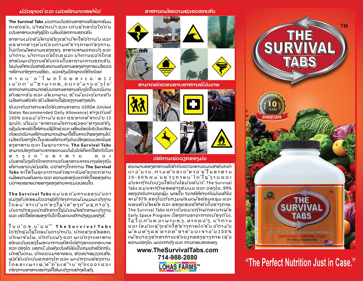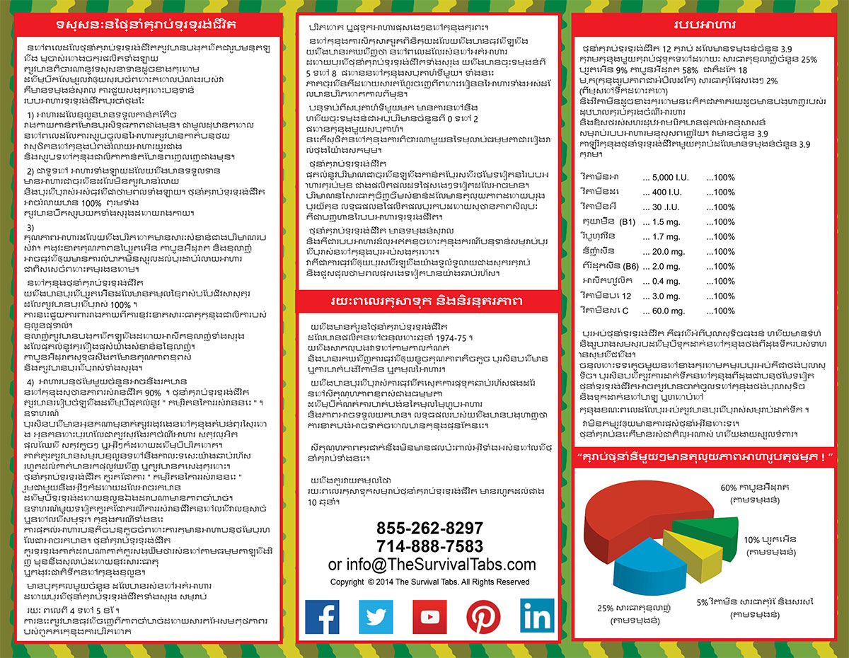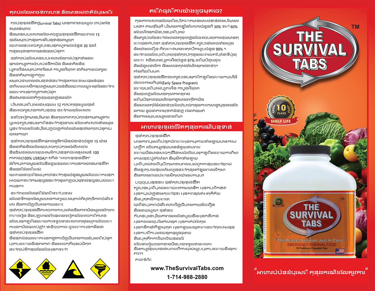 Brochures | Survival Tabs | Emergency Food Meal | Meals Ready to Eat MRE English Spanish Italian French Vietnamese Khmer Laos Burnese Thailand Chinese Japanese Persian Korean Hindu English Spanish Italian French Vietnamese Khmer Laos Burnese Thailand Chinese Japanese Persian Korean Hindu