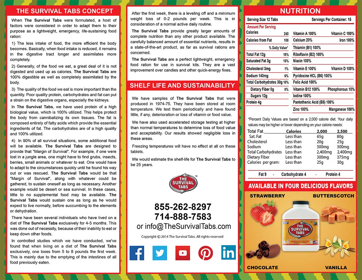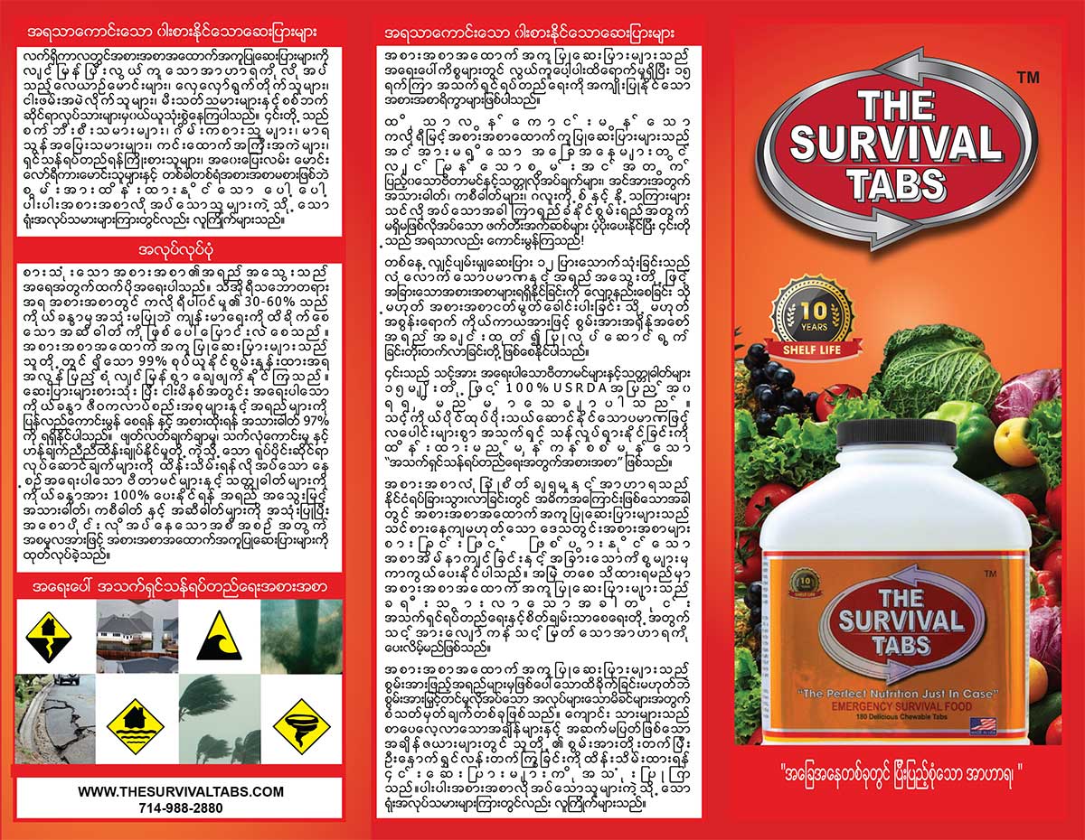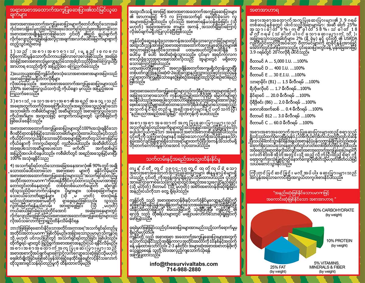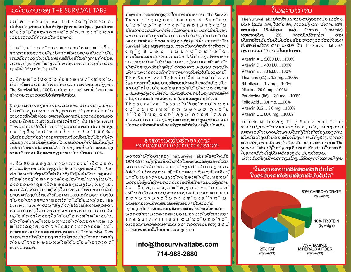 Brochures | Survival Tabs | Emergency Food Meal | Meals Ready to Eat MRE English Spanish Italian French Vietnamese Khmer Laos Burnese Thailand Chinese Japanese Persian Korean Hindu English Spanish Italian French Vietnamese Khmer Laos Burnese Thailand Chinese Japanese Persian Korean Hindu